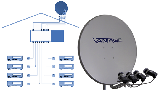 Satelitenanlagen für Ein- und Mehrfamilienhäuser, Wohnanlagen, Geschäftshäuser, Bürogebäude